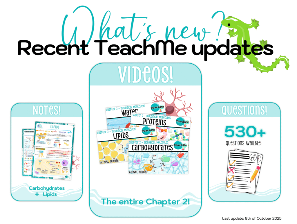 At TeachMe, we make A-level Biology simple and easy to understand. Watch our lecture videos, follow along with notes crafted just for you, and practice with exam-style questions. Everything you need to excel is here – join our Big Brain Squad!